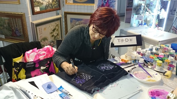 Кстати, краски Pebeo можно использовать не только для росписи стекла. Уникальный мастер-класс по декорированию изделий из текстиля с участием известного французского мастера, Мартин Марэн, на котором она поделилась секретами декорирования во французском стиле текстильных изделий (одежды, обуви, аксессуаров и текстиля для дома) и познакомила с новыми технологиями и приёмами использования профессиональной краски тм Pebeo это доказал!