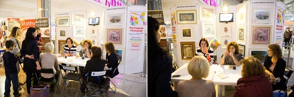 Ещё один сюрприз приготовила гостям фестиваля ТМ PANNA. В один из дней фестиваля состоялась встреча поклонников вышивания с замечательными дизайнерами марки – Алиной Ильиной и Мариной Хромовой. Гости услышали рассказ о творческом пути дизайнеров, узнали много интересно об иероглифах и особенностях Фэн-шуй в вышивке, смогли задать множество вопросов, а также узнали о новых работах дизайнеров, которые совсем скоро пополнят ассортимент ТМ PANNA.